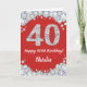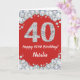 Happy 40th Birthday Red and Silver Glitter Card with personalized name. For further customization, please click the "Customize it" button and use our design tool to modify this template.