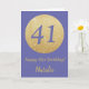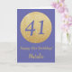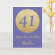 Happy 41st Birthday and Gold Glitter Card with personalized name. For further customization, please click the "Customize it" button and use our design tool to modify this template.