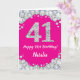 Happy 41st Birthday Hot Pink and Silver Glitter Card with personalized name. For further customization, please click the "Customize it" button and use our design tool to modify this template.