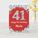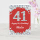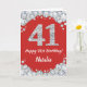 Happy 41st Birthday Red and Silver Glitter Card with personalized name. For further customization, please click the "Customize it" button and use our design tool to modify this template.