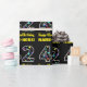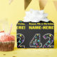 This fun birthday themed wrapping paper design features a large number "42" filled with a pattern of star shapes of various sizes and colours, along with the message "Happy 42nd Birthday,", and a custom name. The background is coloured black. Fun wrapping paper like this might be used when wrapping presents being given to somebody in celebration of their forty second birthday. [~Z0000429]