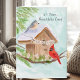 This hand-painted watercolor features a charming birdhouse adorned with a Happy Birthday banner, as a tufted titmouse and a cardinal stop by on a crisp winter day. Soft seasonal details and gentle colors create a warm, thoughtful scene, making it a lovely birthday piece for someone celebrating their 45th birthday!