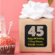 This fun and simple Christmas-themed and birthday-themed December 25th birthday sticker design features a large number "45", with a red, white, and green stripes pattern. It also features the message "Happy 45th Birthday & Merry Christmas,", and an editable name. The background is coloured black. Stickers like this might be fun to use when preparing gifts or presents that are being given to somebody who was born on December 25th (Christmas Day) and who is celebrating their forty fifth birthday. [~Z0000409]