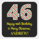 Happy 46th Birthday & Merry Christmas, Custom Name Square Sticker