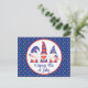 Cute illustration of garden gnomes in the theme of red, white, and blue for the Fourth of July. Equipped with an American flag, firework rocket, and cute heart.