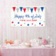 Custom Happy 4th of July party banner with colourful bunting flags garland. Add your own name or welcome home text. Cheerful design with elegant typography template. Perfect for family reunion, welcome home parties, gatherings and other celebrations. Personalized decorations for festive party.