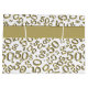 This design is a gold and white random pattern with milestone number 50 repeated in varied sizes and angles in an all-over print.