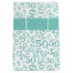 This design is a teal and white random number pattern with 50 repeated in varied sizes and angles in an all-over print.