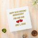 Happy 50th Wedding Anniversary 3 ring binder on a white background with two red hearts. Customers can change the names and dates. Also, you can add a photo of the happy couple..