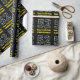 This fun birthday-themed wrapping paper design features a large number "52", filled with a pattern of star shapes having various sizes and colours. It also features the message "Happy 52nd Birthday,", and a personalized name. The background is coloured black. Birthday themed wrapping paper like this might be used when giving a gift or present in celebration of somebody’s fifty second birthday. [~Z0000429]