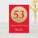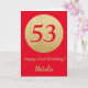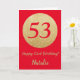 Happy 53rd Birthday Red and Gold Glitter Card with personalized name. For further customization, please click the "Customize it" button and use our design tool to modify this template.