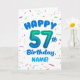 Celebrate their 57th birthday with a bright, cheerful, and personalizable birthday card! This custom name birthday card features a bold number fifty-seven balloon and colorful confetti.