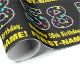 This fun birthday-themed wrapping paper design features a large number "58" filled with a pattern of star shapes of various sizes and colours, along with the message "Happy 58th Birthday,", and an editable name. The background is coloured black. Birthday themed wrapping paper like this might be used when giving a gift or present in celebration of somebody’s fifty eighth birthday. [~Z0000429]