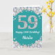 Happy 59th Birthday Teal Turquoise Aqua and Silver Glitter Card with personalized name. For further customization, please click the "Customize it" button and use our design tool to modify this template.