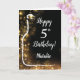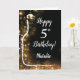 Happy 5th Birthday Black and Gold Glitter Wine Card with personalized name. For further customization, please click the "Customize it" button and use our design tool to modify this template.
