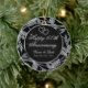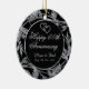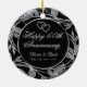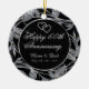 Gorgeous shimmery metallic diamond leaves on black, with two metallic diamond interlocking hearts, double sided ornament, for your 60th wedding anniversary. Customize this keepsake ornament with your names and anniversary date.