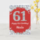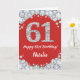 Happy 61st Birthday Red and Silver Glitter Card with personalized name. For further customization, please click the "Customize it" button and use our design tool to modify this template.