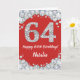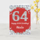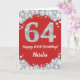 Happy 64th Birthday Red and Silver Glitter Card with personalized name. For further customization, please click the "Customize it" button and use our design tool to modify this template.