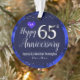 Lovely blue Happy 65th Anniversary ornament. Faux foil on 65th and as a border frame. Blue oil background created by Valarie Wade. Tiny blue heart gem in the upper corner. Names and dates are adjustable.