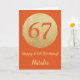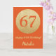 Happy 67th Birthday Orange and Gold Glitter Card with personalized name. For further customization, please click the "Customize it" button and use our design tool to modify this template.