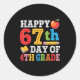Happy 67th Day Of 4th Grade Teacher Student 67 Day Classic Round Sticker