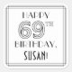 HAPPY 69TH BIRTHDAY, Art Deco Style, Custom Name Square Sticker