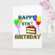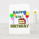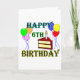 Happy 6th Birthday with Cake, Balloons and Candle Card