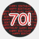 Black, red, and white Happy 70th Birthday design on 70th birthday T-shirts, cards, mugs, buttons, and other 70th birthday items.