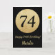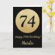 Happy 74th Birthday Black and Gold Glitter Card