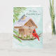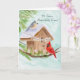 This hand-painted watercolor features a charming birdhouse adorned with a Happy Birthday banner, as a tufted titmouse and a cardinal stop by on a crisp winter day. Soft seasonal details and gentle colors create a warm, thoughtful scene, making it a lovely birthday piece for someone celebrating their 75th birthday!