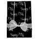 Happy 75th birthday text and white sheer bow on black background.