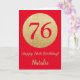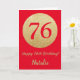Happy 76th Birthday Red and Gold Glitter Card with personalized name. For further customization, please click the "Customize it" button and use our design tool to modify this template.