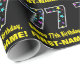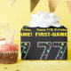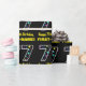 This fun birthday themed wrapping paper design features a large number "77" filled with a pattern of decorative star shapes of various colours and sizes, along with the message "Happy 77th Birthday,", and an editable name. The background is coloured black. Birthday themed wrapping paper like this might be a fun way to wrap a gift or present being given to celebrate somebody’s seventy seventh birthday. [~Z0000429]