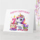 Cute Unicorn in pink and lilac colors. A birthday cake with a Number Seven Candle.