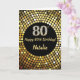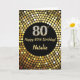 Happy 80th Birthday Black and Gold Glitter Card with personalized name. For further customization, please click the "Customize it" button and use our design tool to modify this template.