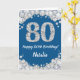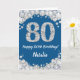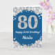 Happy 80th Birthday Blue and Silver Glitter Card with personalized name. For further customization, please click the "Customize it" button and use our design tool to modify this template.