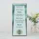 An elegant menu with a green and foil pattern and your unique birthday number in glitter and gold.