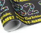 This fun birthday themed wrapping paper design features a large number "82", filled with a pattern of star shapes of various sizes and colours. It also features the message "Happy 82nd Birthday,", and an editable name. The background is coloured black. Wrapping paper like this might be used when giving a gift or present in honour of somebody’s eighty second birthday. [~Z0000429]