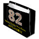 This fun and simple Christmas-themed and birthday-themed December 25th birthday gift bag design features a large number "82", with a green, white, and red stripes pattern. It also features the message "Happy 82nd Birthday & Merry Christmas,", and a customizable name. The background is coloured black. A gift bag like this might be fun to use when wrapping presents that are being given to somebody whose eighty second birthday falls on December 25th (Christmas Day). [~Z0000407]