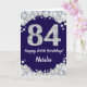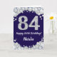 Happy 84th Birthday Navy Blue and Silver Glitter Card with personalized name. For further customization, please click the "Customize it" button and use our design tool to modify this template.