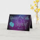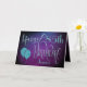 A decorative typographical design with a mystical feel to wish a Happy 85th Birthday. Happy Birthday is set in an elegant script typography with ornate swashes, in shades of blue, and the age is in a cordinating typeface along with your recipient’s name, on a watercolor style background in shades of purple. You can change the message inside to your own greeting if you wish and easily personalize the age and name on the front. Faux sparkle teal balloons add the perfect finishing touch on the front! The same colored background continues on the inside.