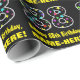 This fun birthday-themed wrapping paper design features a large number "88", filled with a pattern of decorative star shapes having various sizes and colours. It also features the message "Happy 88th Birthday,", and a custom name. The background is coloured black. Birthday themed wrapping paper like this might be a fun way to wrap a gift or present being given to celebrate somebody’s 88th birthday. [~Z0000429]
