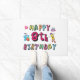 Happy 8th Birthday. Funny and cute Birthday design with lovely teddy bear holding a gift and a funny pencil writing the birthday wishes. A perfect match for clothing, shirts and accessories.