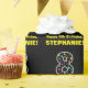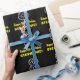This fun birthday themed wrapping paper design features a large number "8", filled with a pattern of star shapes having various sizes and colours. It also features the message "Happy 8th Birthday,", and a personalized name. The background is coloured black. Wrapping paper like this might be used when giving a gift or present in honour of somebody’s eighth birthday. [~Z0000429]