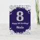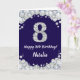 Happy 8th Birthday Navy Blue and Silver Glitter Card with personalized name. For further customization, please click the "Customize it" button and use our design tool to modify this template.