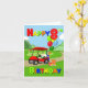 Zooming into the birthday scene, a bright red golf cart brings excitement and cheer! Up front sits a festive golf-themed cake, while the back is stacked with colourful presents and balloons topped off with a giant number 8 balloon. With bold primary coloured text, this card is perfect for celebrating a little boy’s special day.