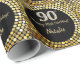 Happy 90th Birthday Black and Gold Glitter Wrapping Paper with personalized name. For further customization, please click the "Customize it" button and use our design tool to modify this template.