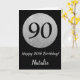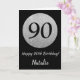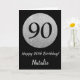 Happy 90th Birthday Black and Silver Glitter Card with personalized name. For further customization, please click the "Customize it" button and use our design tool to modify this template.