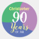 Autocollants cadeaux d'anniversaire. Célébrez un anniversaire avec un autocollant personnalisé indiquant le nom du récipiendaire et le nombre d'années. Sticker pour 90 ans.
