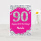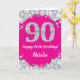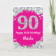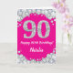 Happy 90th Birthday Hot Pink and Silver Glitter Card with personalized name. For further customization, please click the "Customize it" button and use our design tool to modify this template.